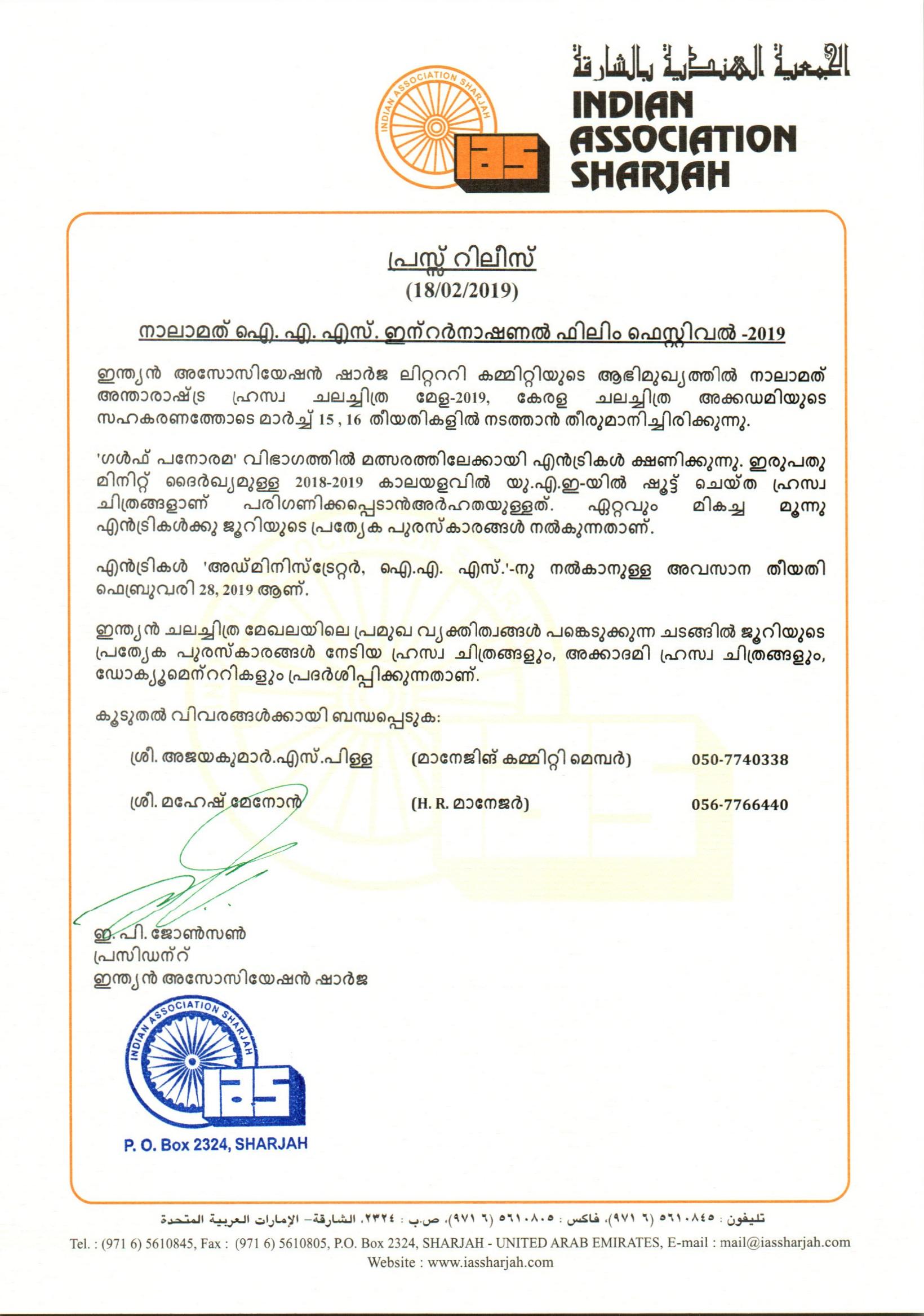IAS INTERNATIONAL SHORT FILM FESTIVAL OF UAE – 2019 (Mar 15-16, 2019)